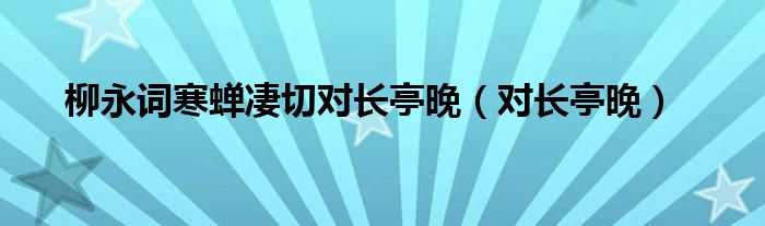 关于柳永词寒蝉凄切对长亭晚,对长亭晚这个很多人还不知道,今天菲菲来为大家解答以上的问题,现在让我们一起来看看吧!