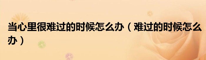 关于当心里很难过的时候怎么办,难过的时候怎么办这个很多人还不知道,今天菲菲来为大家解答以上的问题,现在让我们一起来看看吧!
