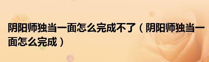 大家好,小晋来为大家解答以下问题,关于阴阳师独当一面怎么完成不了,阴阳师独当一面怎么完成很多人还不知道,今天让我们一起来看看吧!