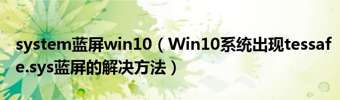 大家好,今天小悦来为大家解答以上问题。system蓝屏win10,Win10系统出现tessafe.sys蓝屏的解决方法很多人还不知道,现在让我们一起来看看吧!