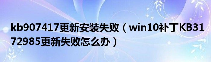 大家好,今天小悦来为大家解答以上问题。kb907417更新安装失败,win10补丁KB3172985更新失败怎么办很多人还不知道,现在让我们一起来看看吧!