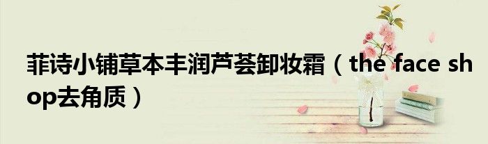 菲诗小铺草本丰润芦荟卸妆霜,the face shop去角质这个很多人还不知道,小飞来为大家解答以上的问题。现在让我们一起来看看吧!