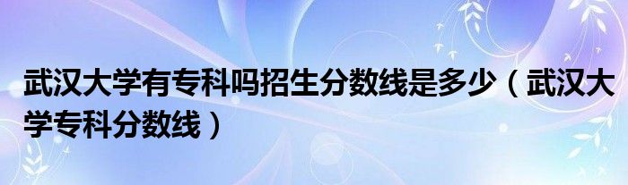 大家好,小晋来为大家解答以下问题,关于武汉大学有专科吗招生分数线是多少,武汉大学专科分数线很多人还不知道,今天让我们一起来看看吧!
