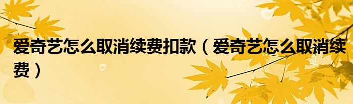 大家好,跳跳为你解答以上问题。爱奇艺怎么取消续费扣款,爱奇艺怎么取消续费这个问题很多人还不知道,现在让我们一起来看看吧!