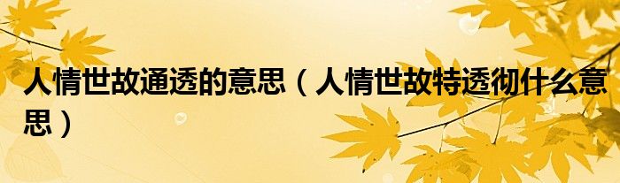 大家好,小晋来为大家解答以下问题,关于人情世故通透的意思,人情世故特透彻什么意思很多人还不知道,今天让我们一起来看看吧!