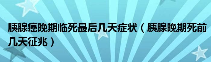 1、这种情况通常是胰腺部位的恶性肿瘤,比如胰腺癌晚期,患者在临死前可能会有相关的症状。