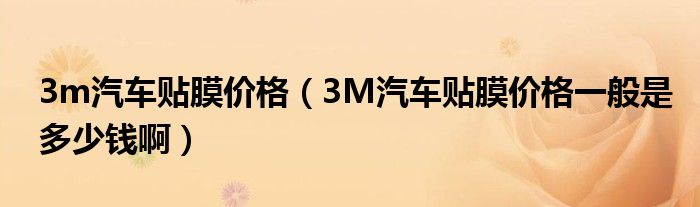 大家好,小常来为大家解答以下问题,对于3m汽车贴膜价格,3M汽车贴膜价格一般是多少钱啊很多人还不知道,今天让我们一起来看看吧!