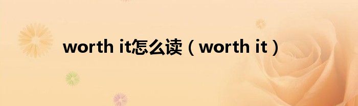 关于worth it怎么读,worth it这个很多人还不知道,今天菲菲来为大家解答以上的问题,现在让我们一起来看看吧!