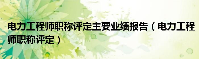 电力工程师职称评定主要业绩报告(电力工程师职称评定)