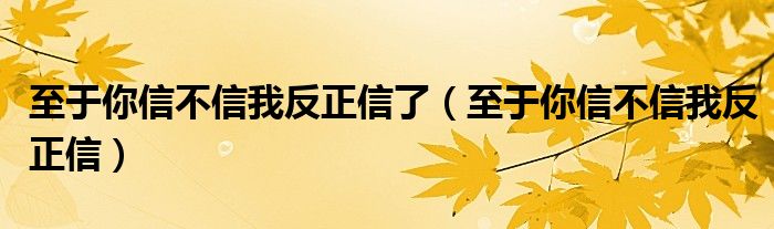 关于至于你信不信我反正信了,至于你信不信我反正信这个很多人还不知道,今天菲菲来为大家解答以上的问题,现在让我们一起来看看吧!