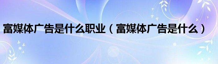 关于富媒体广告是什么职业,富媒体广告是什么这个很多人还不知道,今天菲菲来为大家解答以上的问题,现在让我们一起来看看吧!
