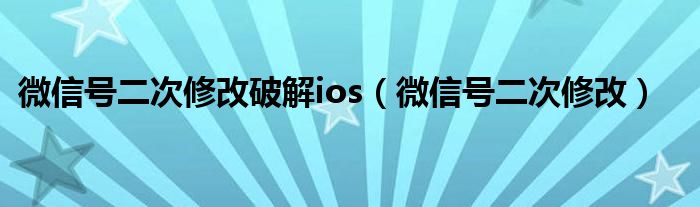 大家好,小晋来为大家解答以下问题,关于微信号二次修改破解ios,微信号二次修改很多人还不知道,今天让我们一起来看看吧!