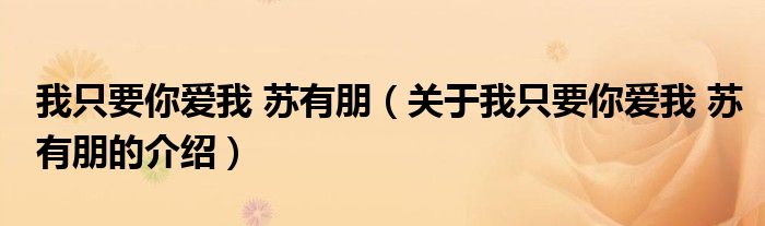 我只要你爱我 苏有朋(关于我只要你爱我 苏有朋的介绍)