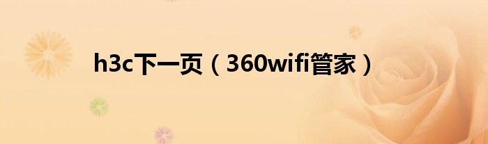 关于h3c下一页,360wifi管家这个很多人还不知道,今天菲菲来为大家解答以上的问题,现在让我们一起来看看吧!