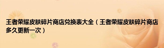 王者荣耀皮肤碎片商店兑换表大全(王者荣耀皮肤碎片商店多久更新一次)