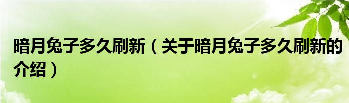 暗月兔子多久刷新(关于暗月兔子多久刷新的介绍)