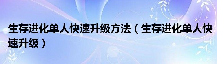 大家好,我是小科,我来为大家解答以上问题。生存进化单人快速升级方法,生存进化单人快速升级很多人还不知道,现在让我们一起来看看吧!