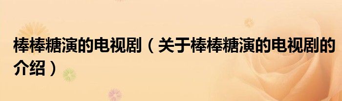 大家好,小夏来为大家解答以上的问题。棒棒糖演的电视剧,关于棒棒糖演的电视剧的介绍很多人还不知道,现在让我们一起来看看吧!