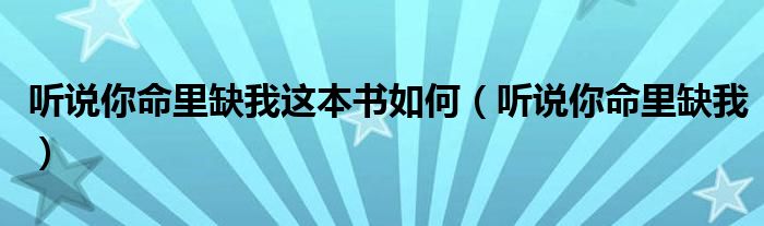 听说你命里缺我这本书如何(听说你命里缺我)
