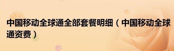 中国移动全球通全部套餐明细(中国移动全球通资费)