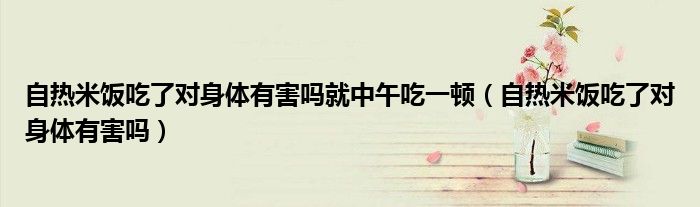 大家好,乐天来为大家解答以下的问题,自热米饭吃了对身体有害吗就中午吃一顿,自热米饭吃了对身体有害吗很多人还不知道,现在让我们一起来看看吧!