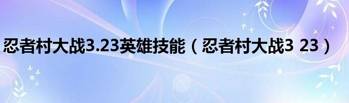 忍者村大战3.23英雄技能(忍者村大战3 23)