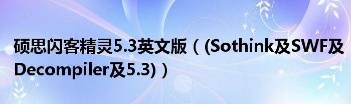 大家好,今天小悦来为大家解答以上问题。硕思闪客精灵5.3英文版,(Sothink及SWF及Decompiler及5.3)很多人还不知道,现在让我们一起来看看吧!