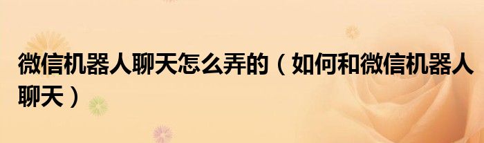 微信机器人聊天怎么弄的(如何和微信机器人聊天)
