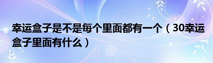 大家好,小晋来为大家解答以下问题,关于幸运盒子是不是每个里面都有一个,30幸运盒子里面有什么很多人还不知道,今天让我们一起来看看吧!