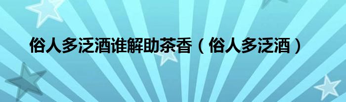俗人多泛酒谁解助茶香,俗人多泛酒这个很多人还不知道,小飞来为大家解答以上的问题。现在让我们一起来看看吧!