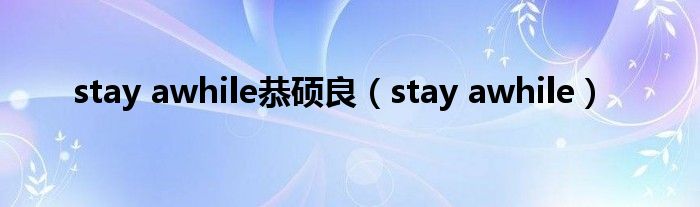 stay awhile恭硕良,stay awhile这个很多人还不知道,小飞来为大家解答以上的问题。现在让我们一起来看看吧!