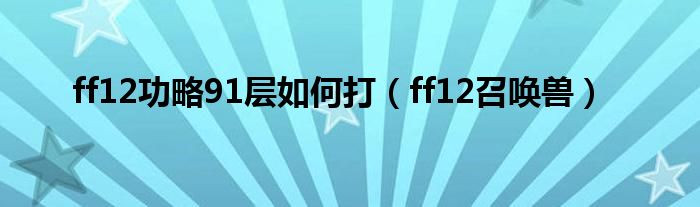 大家好,慧慧来为大家解答以上问题,ff12功略91层如何打,ff12召唤兽很多人还不知道,现在让我们一起来看看吧!