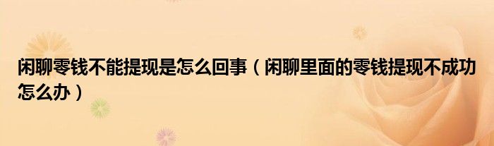 大家好,跳跳为你解答以上问题。闲聊零钱不能提现是怎么回事,闲聊里面的零钱提现不成功怎么办这个问题很多人还不知道,现在让我们一起来看看吧!