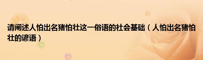 大家好,小晋来为大家解答以下问题,关于请阐述人怕出名猪怕壮这一俗语的社会基础,人怕出名猪怕壮的谚语很多人还不知道,今天让我们一起来看看吧!