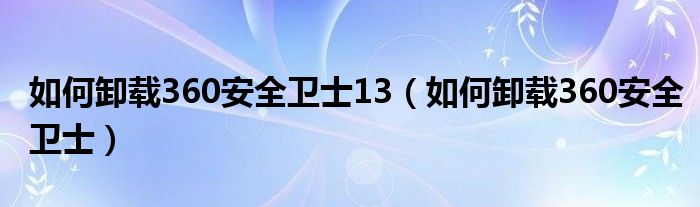大家好,小晋来为大家解答以下问题,关于如何卸载360安全卫士13,如何卸载360安全卫士很多人还不知道,今天让我们一起来看看吧!