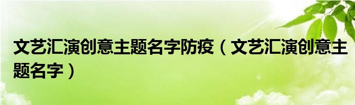 大家好,小晋来为大家解答以下问题,关于文艺汇演创意主题名字防疫,文艺汇演创意主题名字很多人还不知道,今天让我们一起来看看吧!