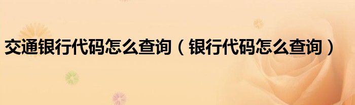 关于交通银行代码怎么查询,银行代码怎么查询这个很多人还不知道,今天菲菲来为大家解答以上的问题,现在让我们一起来看看吧!