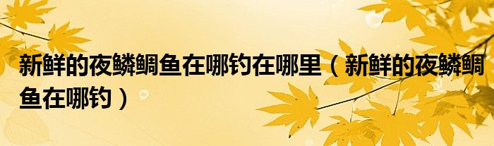 关于新鲜的夜鳞鲷鱼在哪钓在哪里,新鲜的夜鳞鲷鱼在哪钓这个很多人还不知道,今天菲菲来为大家解答以上的问题,现在让我们一起来看看吧!