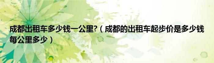 关于成都出租车多少钱一公里?,成都的出租车起步价是多少钱每公里多少这个很多人还不知道,今天菲菲来为大家解答以上的问题,现在让我们一起来看看吧!