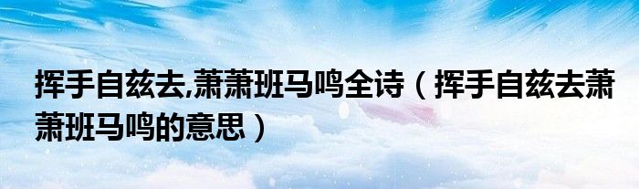 关于挥手自兹去,萧萧班马鸣全诗,挥手自兹去萧萧班马鸣的意思这个很多人还不知道,今天菲菲来为大家解答以上的问题,现在让我们一起来看看吧!